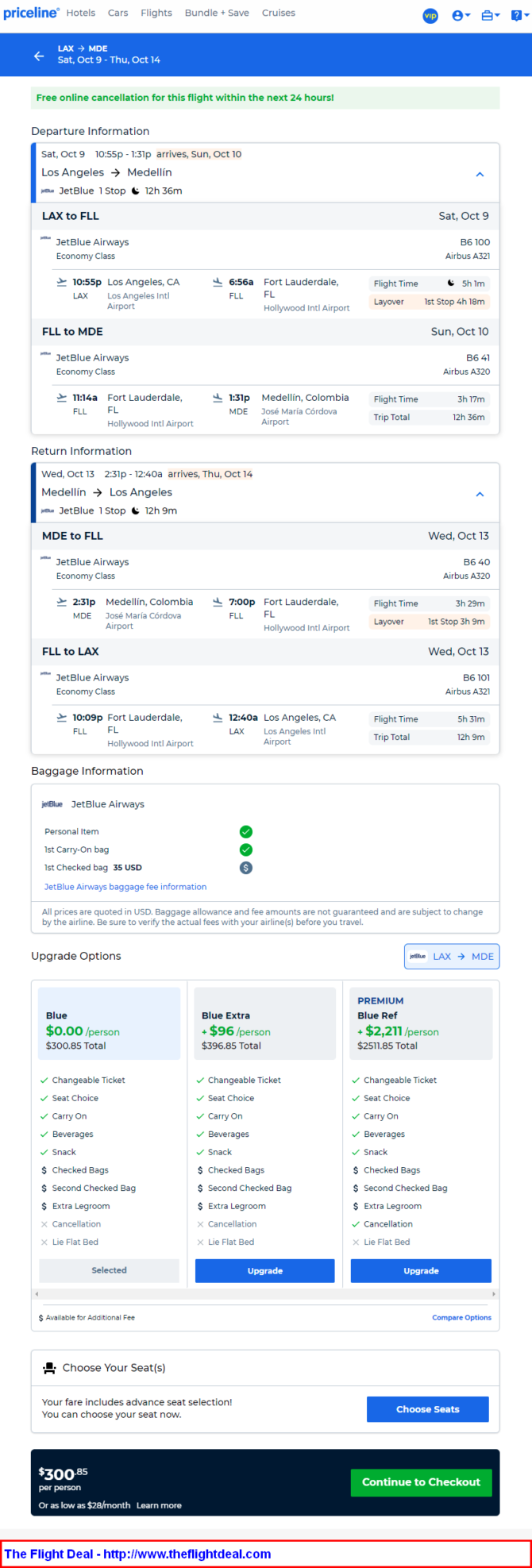 • LAX – FLL (Fort Lauderdale) – MDE (Medellin) – FLL – LAX