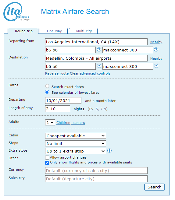 • Support us by using our Priceline link to book with dates found on ITA Software Matrix Airfare Search.