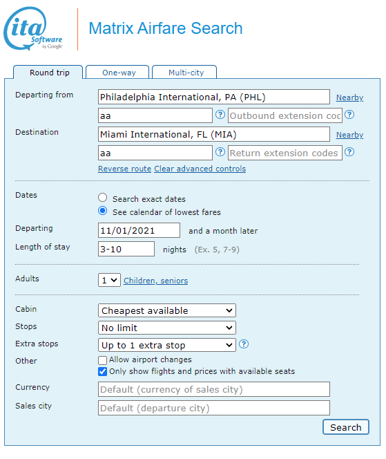 You cannot buy tickets using ITA. To buy, follow our instructions in the “How to Buy” section below.