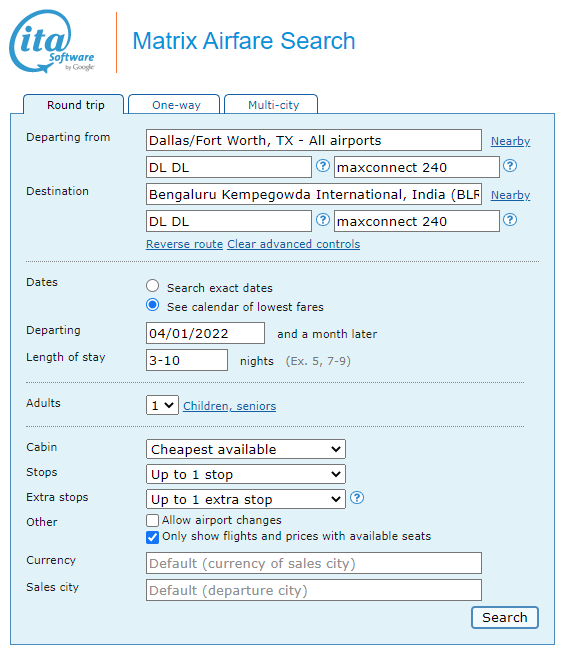 You cannot buy tickets using ITA. To buy, follow our instructions in the “How to Buy” section below.