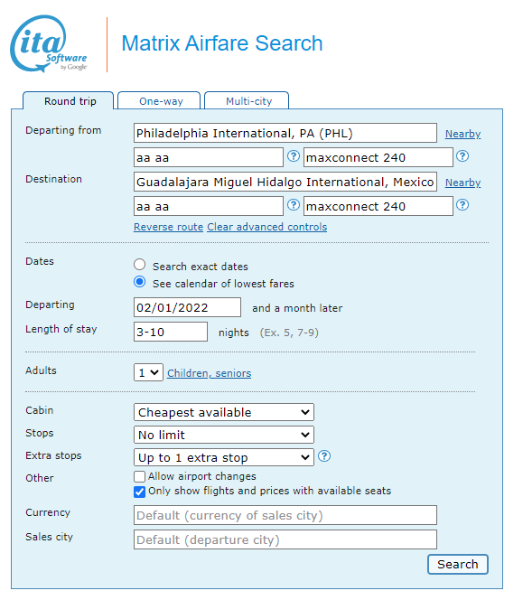 You cannot buy tickets using ITA. To buy, follow our instructions in the “How to Buy” section below.
