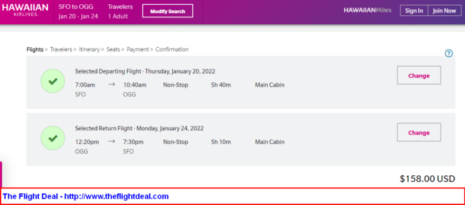 • SFO – OGG (Maui) – SFO