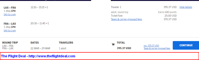- LAX – CPH (Copenhagen) – FRA (Frankfurt) – CPH – LAX