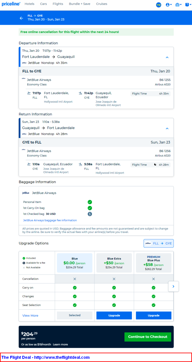 FLL – GYE (Guayaquil) – FLL