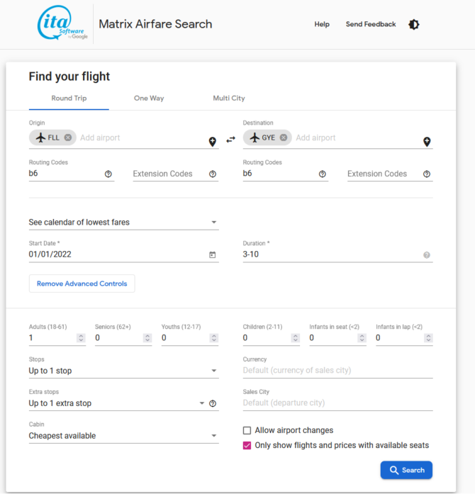 You cannot buy tickets using ITA. To buy, follow our instructions in the “How to Buy” section below.