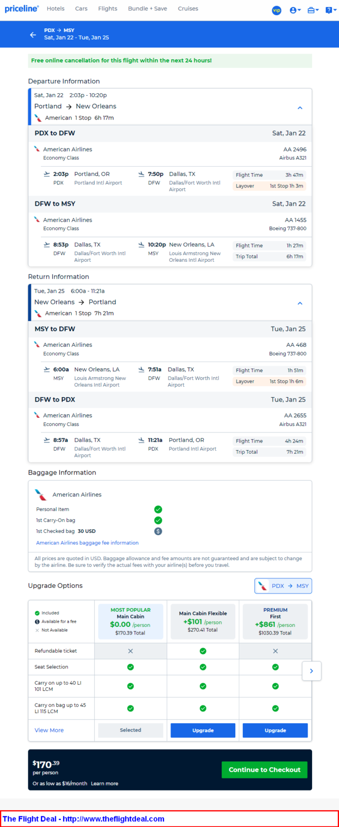 PDX – DFW (Dallas) – MSY (New Orleans) – DFW- PDX