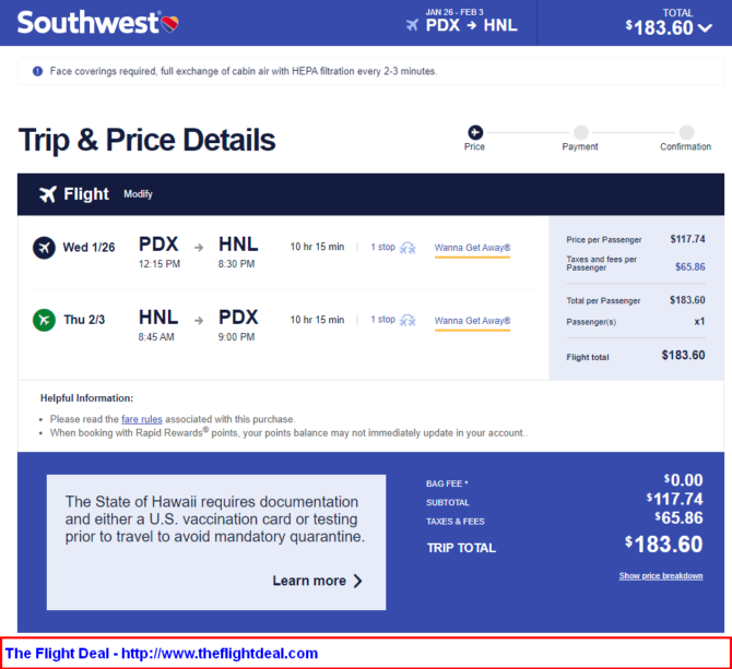 Valid for travel from late January 2022 – early February 2022. Availability is limited. Must purchase at least 1 day in advance of departure