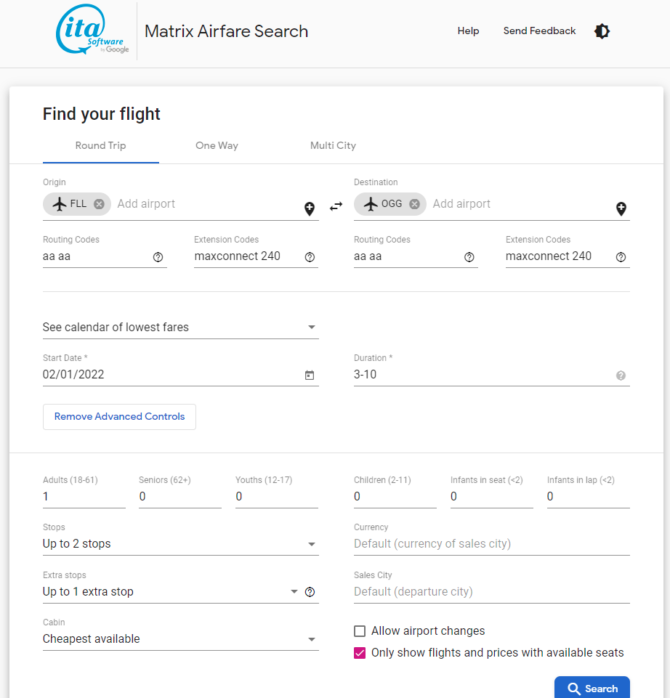 You cannot buy tickets using ITA. To buy, follow our instructions in the “How to Buy” section below.