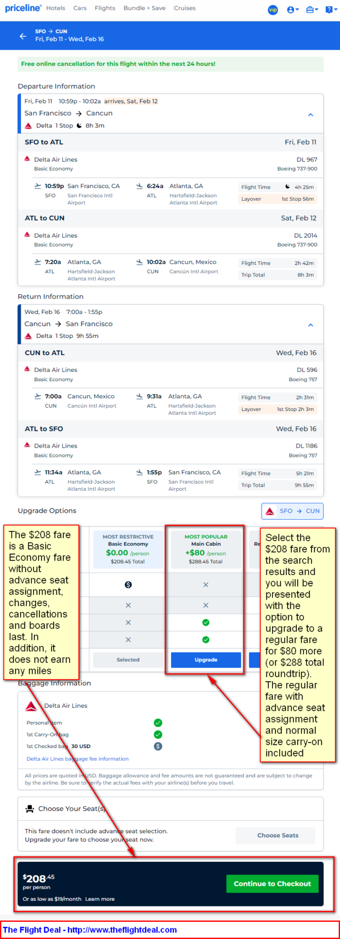 This is instructing ITA to search for the Basic Economy fare. Use those dates on Priceline and you will be presented with the option to upgrade to the regular economy fare.
