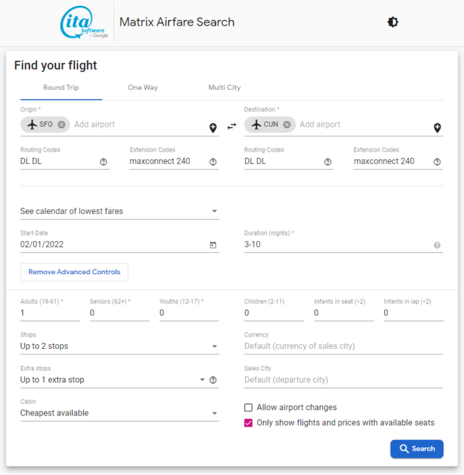 You cannot buy tickets using ITA. To buy, follow our instructions in the “How to Buy” section below.