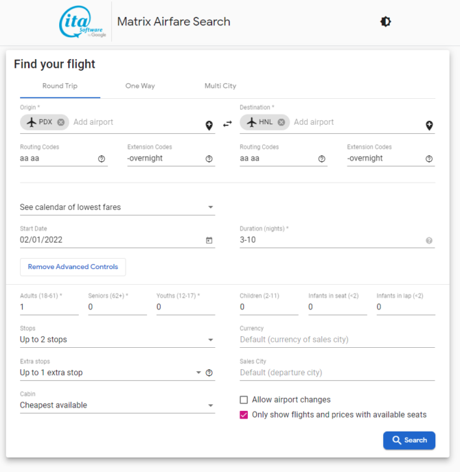 You cannot buy tickets using ITA. To buy, follow our instructions in the “How to Buy” section below.