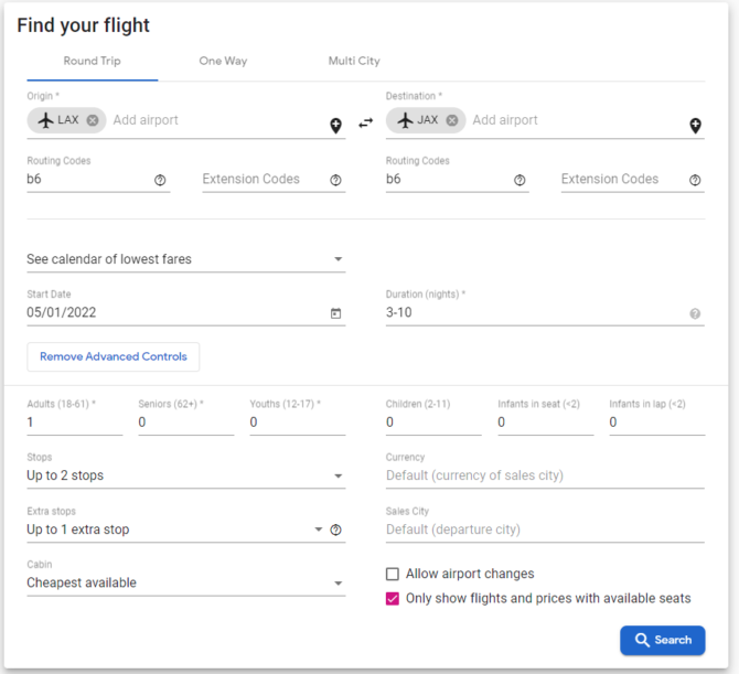 These works both ways, so JAX can be the Origin city and LAX can be the Destination