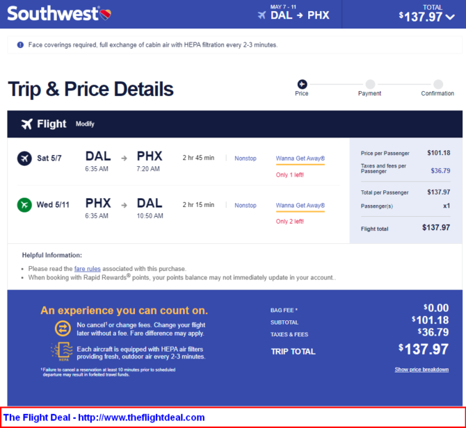 Valid for travel in early May. Availability is limited. Must purchase at least 7 days in advance of departure