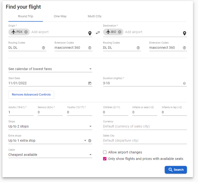 • This is instructing ITA to search for the Basic Economy fare. Use those dates on Priceline and you will be presented with the option to upgrade to the regular economy fare.