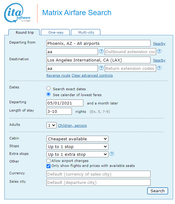 These works both ways, so LAX can be the Departure city and PHX can be the Destination