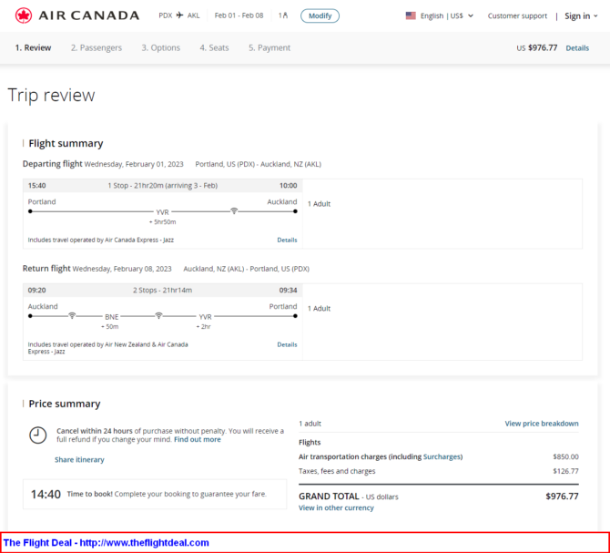 - PDX – YVR (Vancouver) – AKL (Auckland) – BNE (Brisbane) – YVR – PDX