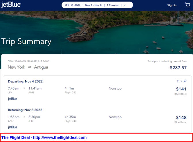 • JFK – ANU (Antigua) – JFK