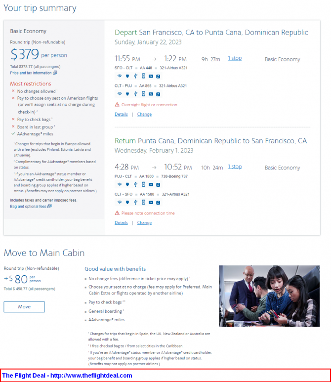 Valid for travel in late January 2023. Availability is extremely limited – just a few scattered dates. Must purchase at least 14 days in advance of departure