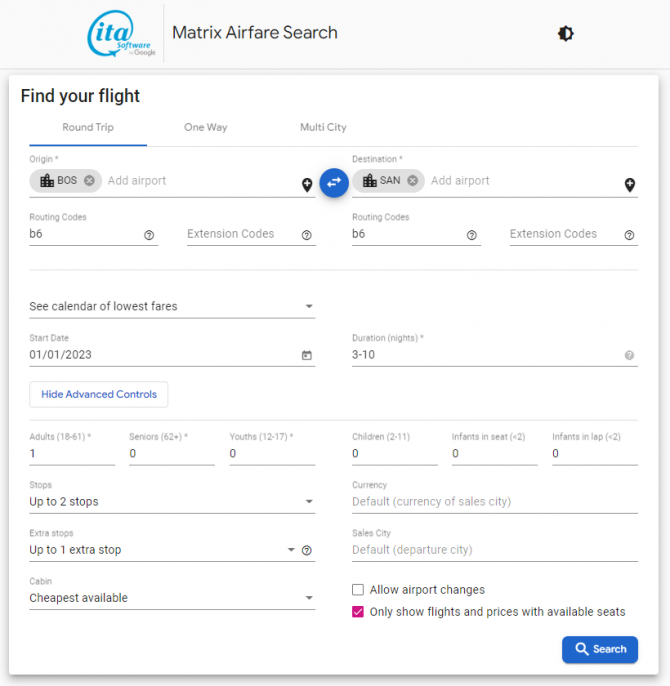 This is instructing Matrix Airfare Search by ITA Software to search for the Basic Economy fare. Use those dates on jetBlue and you will be presented with the option to upgrade to the regular economy fare.