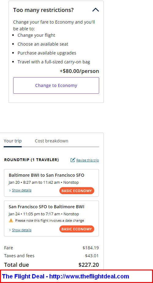 This works both ways, so SFO can be the Origin and BWI can be the Destination