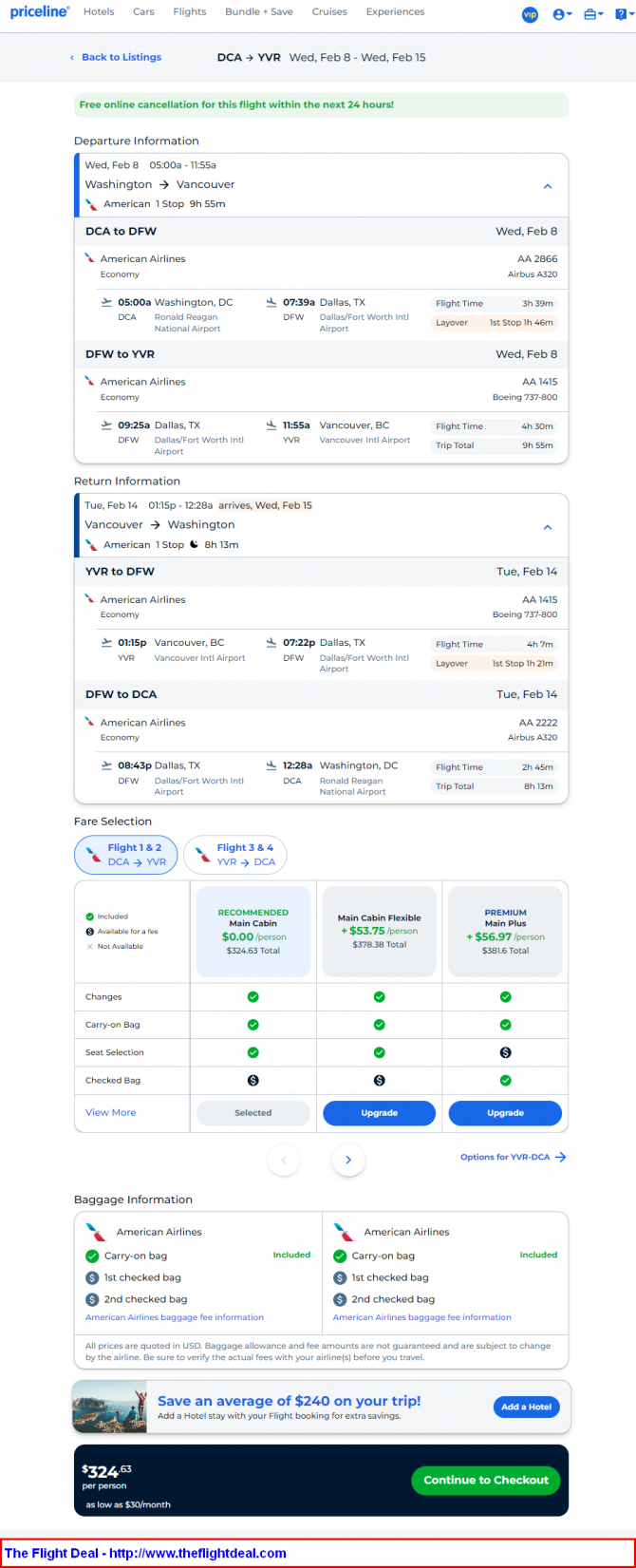 • DCA – DFW (Dallas) – YVR (Vancouver) – DFW – DCA