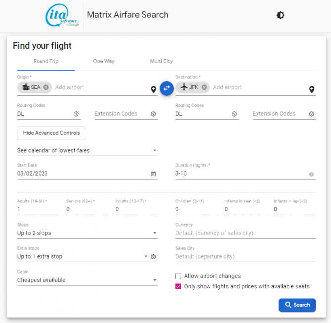 These works both ways, so JFK can be the Origin city and SEA can be the Destination