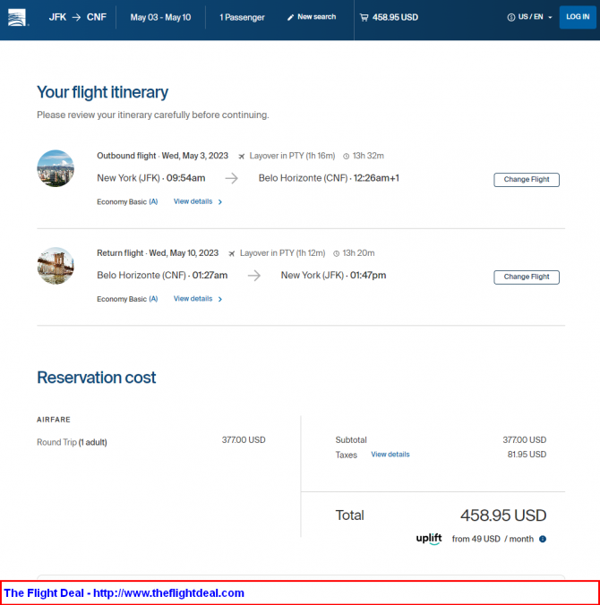 • JFK – PTY (Panama City) – CNF (Belo Horizonte)  – PTY – JFK