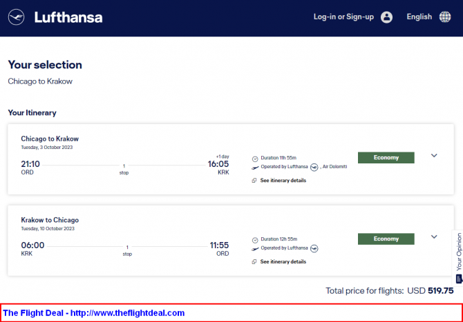 • ORD – MUC (Munich)  – KRK (Krakow) – MUC – ORD