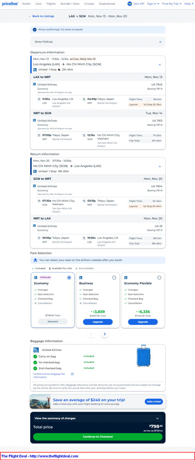 • LAX – NRT (Tokyo – Narita) – SGN (Ho Chi Minh City) – NRT – LAX