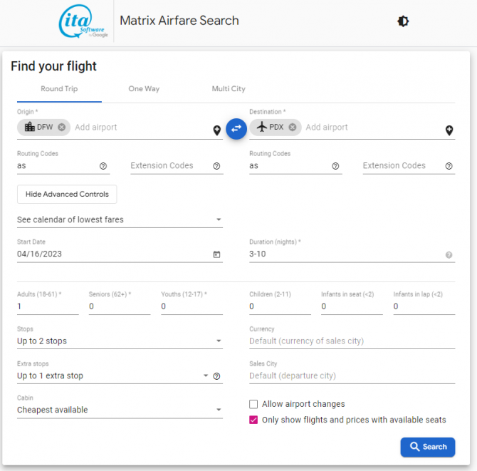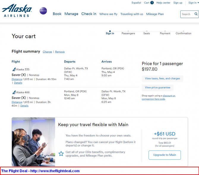 This works both ways, so PDX can be the Origin and DFW can be the Destination