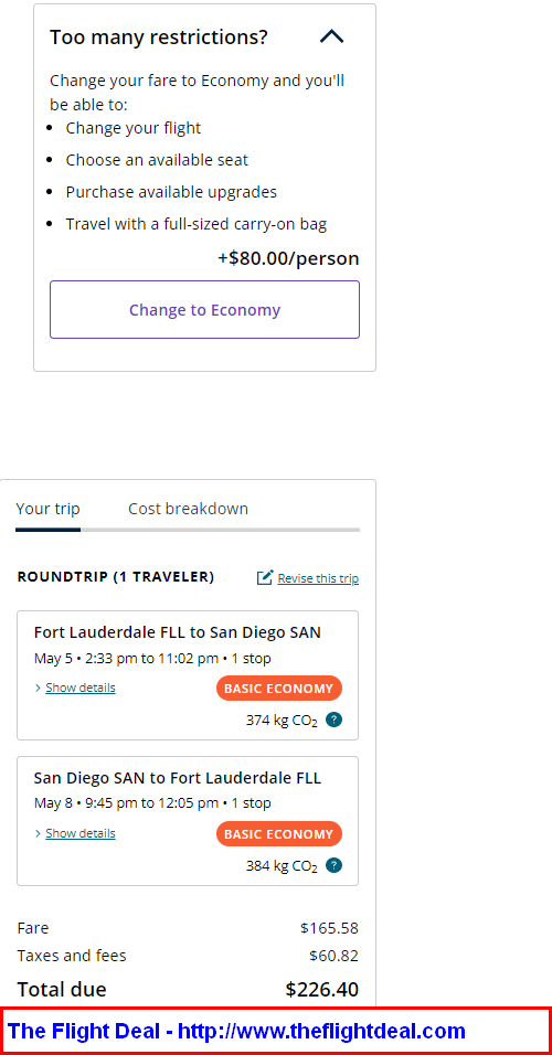 • Miles Flown: 6,634 miles or 3.4 cents per mile (Basic Economy) / 4.6 cents per mile (Regular Economy)