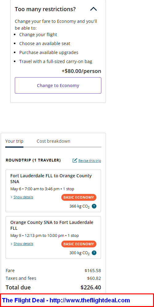 United: Fort Lauderdale – Santa Ana (Orange County), California (and vice versa). $226 (Basic Economy) / $306 (Regular Economy). Roundtrip, including all Taxes