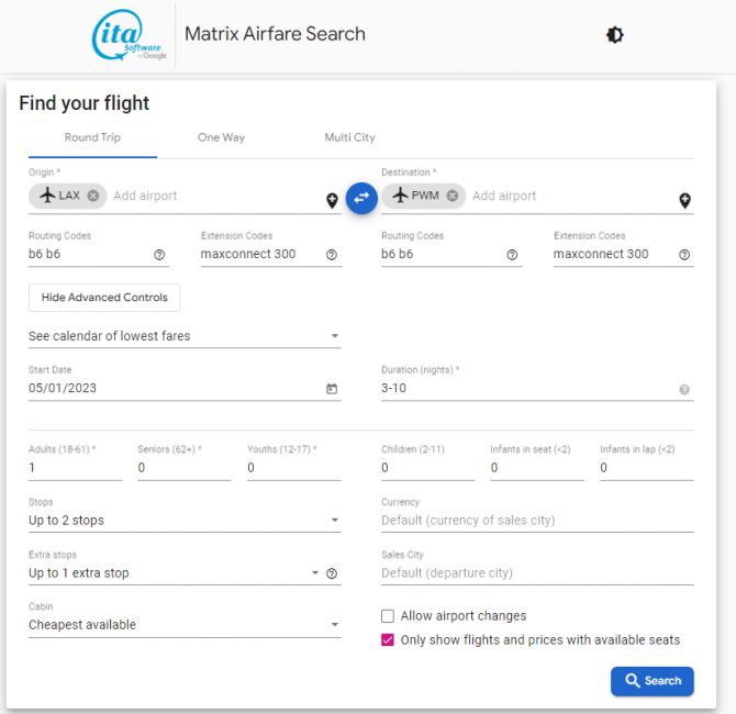 Valid for travel in early May. Availability is extremely limited. Must purchase at least 21 days in advance of departure