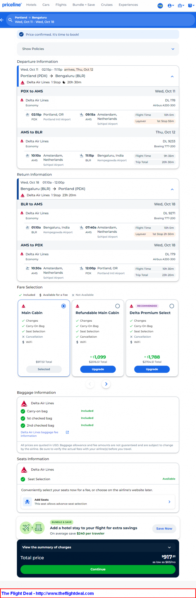 • PDX – AMS (Amsterdam) – BLR (Bangalore) – AMS – PDX