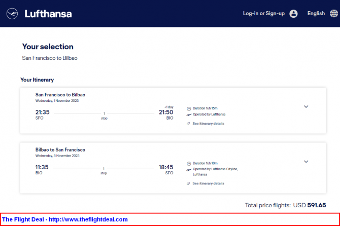 - SFO – MUC (Munich) – BIO (Bilbao) – MUC – SFO