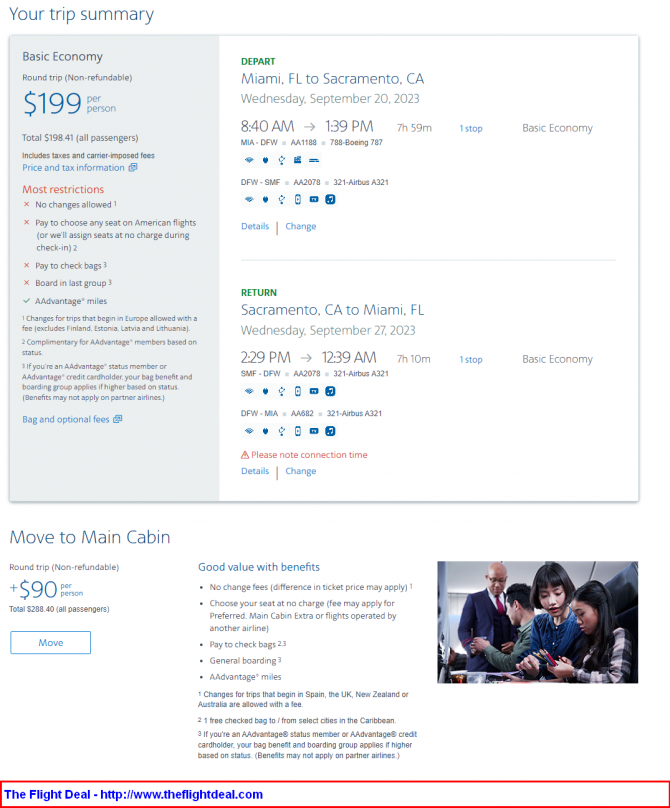 MIA – DFW (Dallas) – SMF (Sacramento) – DFW – MIA