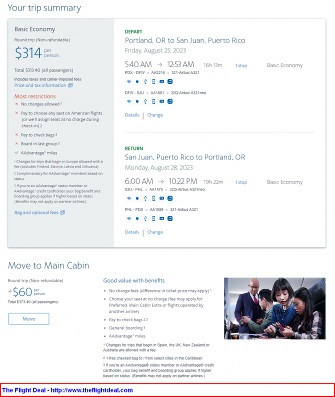 • PDX – DFW (Dallas) – SJU (San Juan) – PHL (Philadelphia) – PDX