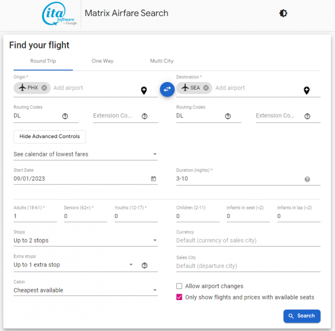 These works both ways, so SEA can be the Origin city and PHX can be the Destination