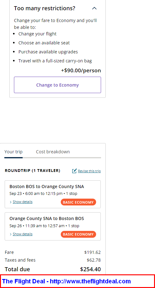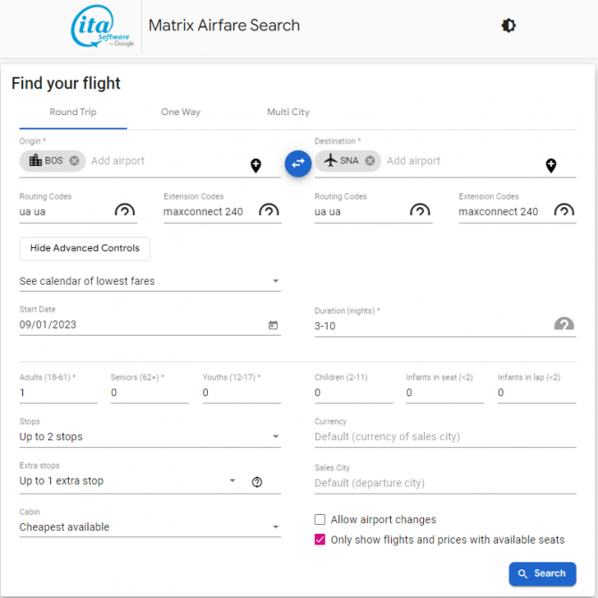 This works both ways, so SNA can be the Origin city and BOS can be the Destination