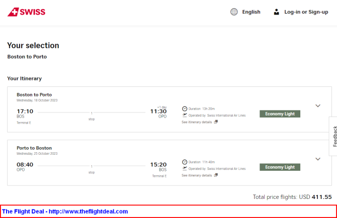 • BOS – ZRH (Zurich) – OPO (Porto) –  ZRH – BOS