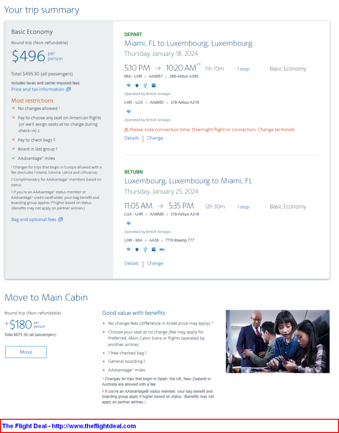 MIA – LHR (London) – LUX (Luxembourg) – LHR – MIA