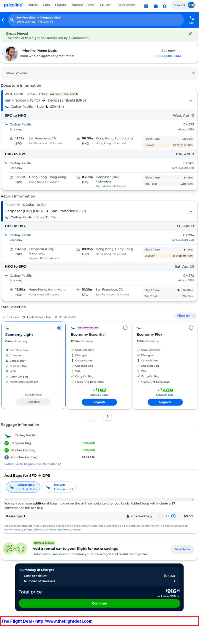 - SFO – HKG (Hong Kong) – DPS (Bali – Denpasar) – HKG – SFO