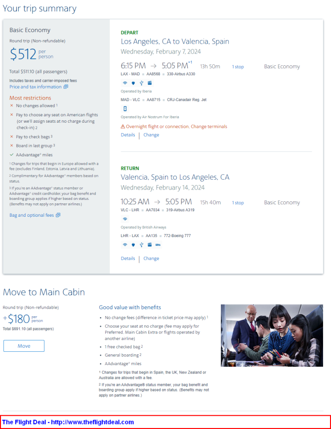• LAX  – MAD (Madrid) – VLC (Valencia)- LHR (London)  – LAX