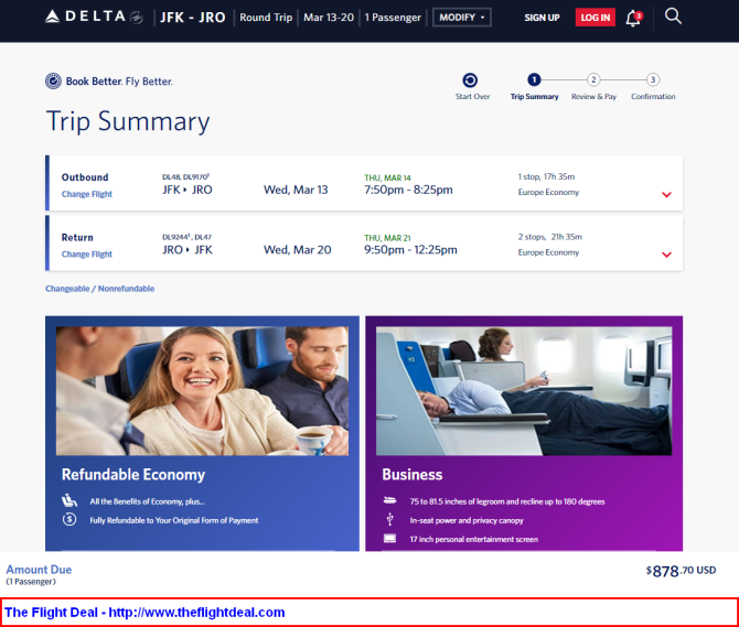 - Book on Delta with dates found on Matrix Airfare Search by ITA Software.