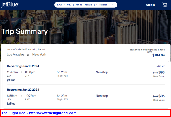 • Book on jetBlue with dates found on Matrix Airfare Search by ITA Software.