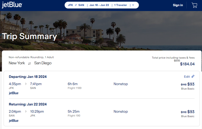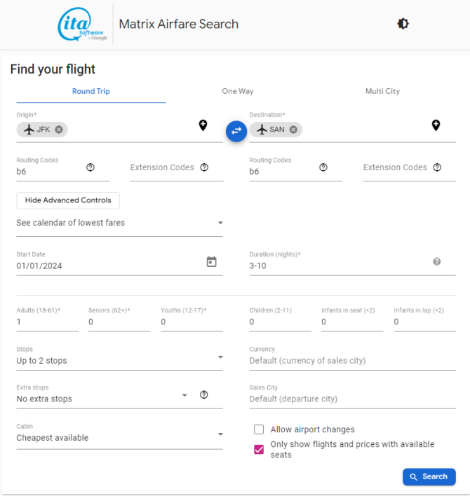 • Book on jetBlue with dates found on Matrix Airfare Search by ITA Software.