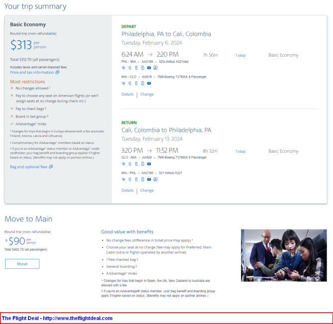 • PHL -MIA (Miami) – CLO (Cali)  – MIA – PHL