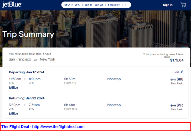 This works both ways, so JFK can be the Origin and SFO can be the Destination