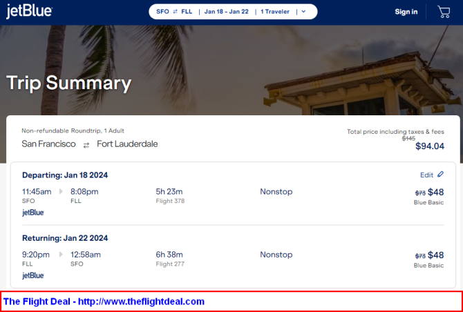 This works both ways, so FLL can be the the Origin and SFO can be the Destination