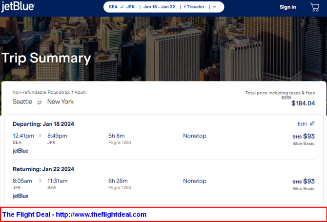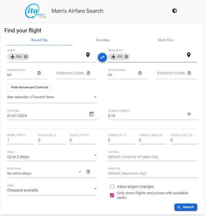 This works both ways, so JFK can be the Origin and SEA can be the Destination